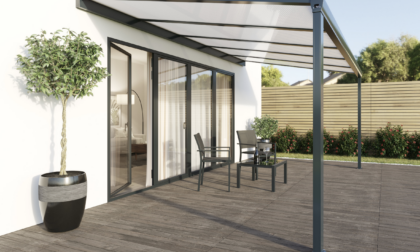 - Panneau de polycarbonate opale 16 mm traité anti UV avec obturateur poly, adhesif microperforé